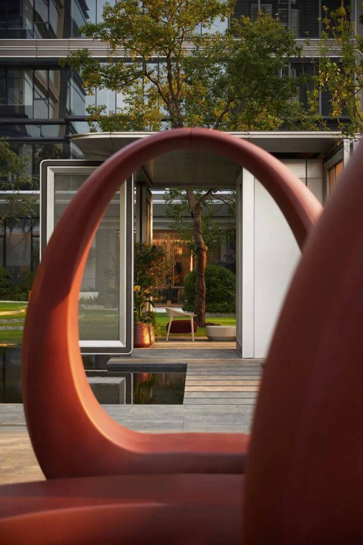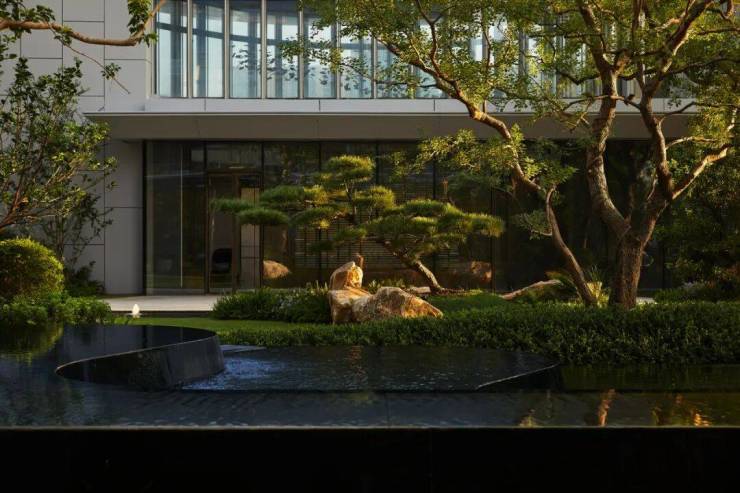 远观之,「SONG370」宛若一座置于奥体之上,融合传统园林技法的当代生活谧境,身处其中不仅能感受当代空间与传统技法的交融与碰撞,更能感受到符合当下心境的生活体验与东方情怀,犹如卧游在山水画境。