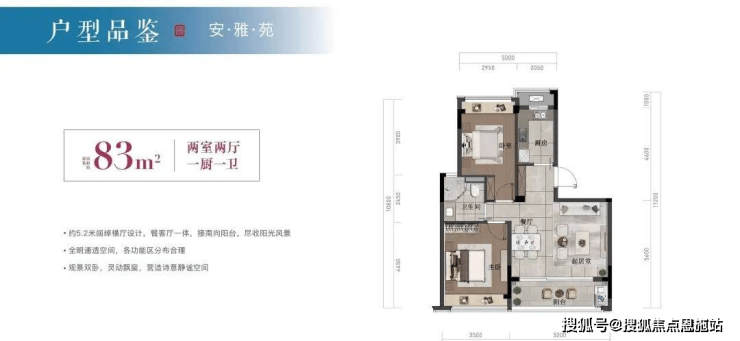 83㎡两房一卫户型