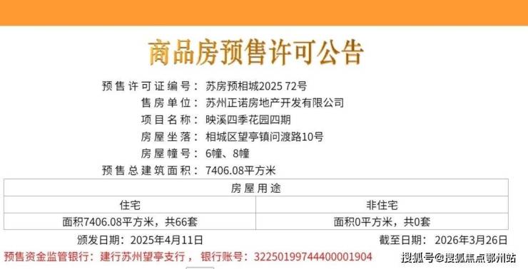映溪四季花园,位于相城区望亭镇问渡路东、牡丹路北,是2020年4月,正荣以总价75533万元竞得的宅地,成交楼面价7821元/平。