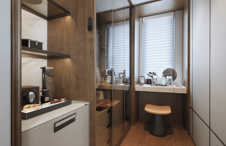 在春来晴翠园 建面约169㎡晴翠户型 中,最亮眼的设计显而易见—— 主卧90°转角窗,揽获270°环幕视野 ,将天光云影尽纳室内。不仅引入绝佳采光与风景,更成为一处心灵栖所。