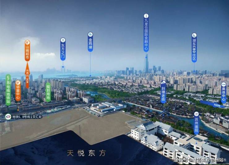 背依斜塘老街时尚街区,紧邻邻里中心,向东约1km(一站地铁)奥体中心,向西约1.5km邻瑞广场山姆超市、向北约2.5km圆融时代广场、久光百货、IFS苏州国际金融中心。沿中新大道与金鸡湖隧道直达苏州中心。