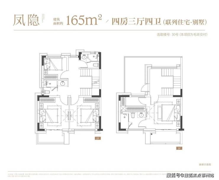 叠墅:叠墅一共四层,分为上/下叠,上叠建筑面积约139㎡,下叠建筑面积约142㎡。