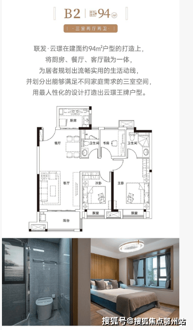 还有建面约94㎡高层户型,将厨房、餐厅、客厅融为一体,规划出流畅实用的生活动线并划分出能够满足不同家庭需求的三室空间;