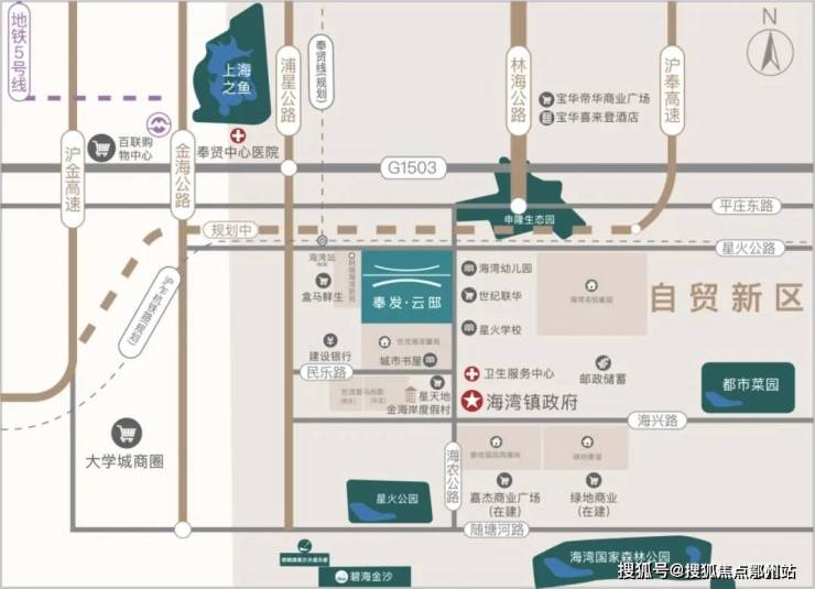交通方面, 纵横立体路网 闲适与繁华随意切换 林海公路/浦星公路/沪金高速/沪奉高速(建设中)/金海公路多条纵线与绕城高速、申嘉湖高速双横向干道组成立体路网,辐射大浦东黄金生活圈。规划中的市域奉贤线直抵海湾大学城,项目门口即有公交站点布局,便捷路网,畅享上海主场生活。