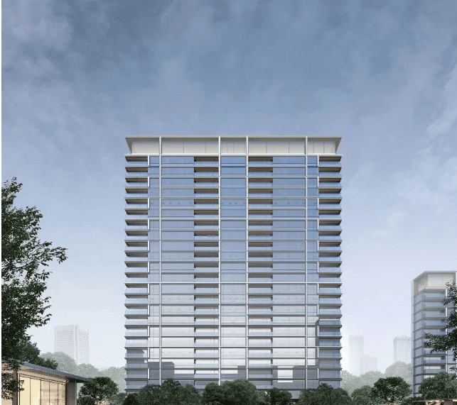 立面设计:常州首个四面玻璃幕墙+铝板立面,窗墙比超80%,蓝灰色调搭配“银甲金边”镶边工艺