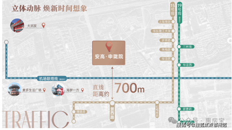 在未来梅陇将打破交通单一现状,围绕地铁15号线、19号线(在建)、23号线(在建)、机场联络线四轨换乘优势,与徐汇快速切换,开启多维立体交通时代,居者于此优享高效复合的生活方式。