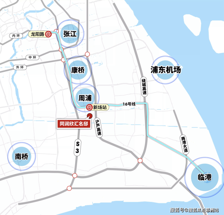 此外,另有轨交16号线新场站、S2沪芦高速、S32申嘉湖高速及G1501绕城高速,直达浦东国际机场及临港新城;