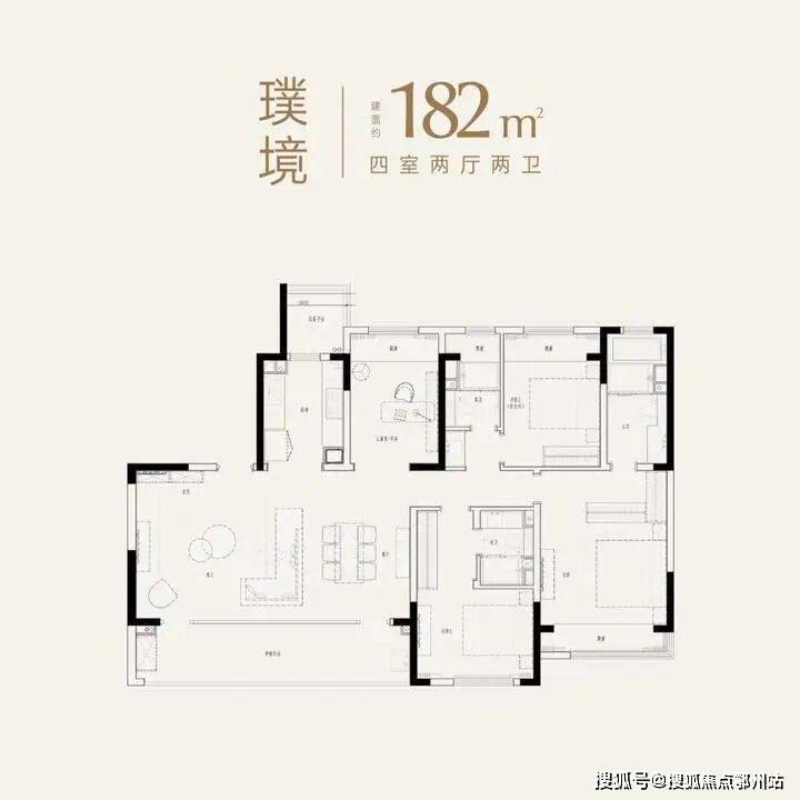 建面约182㎡,四房两厅三卫,是整个小区最大的户型;LDKB一体化,超大横厅布局,空间奢阔;南向舒适双套房,满足各个家庭成员需求。