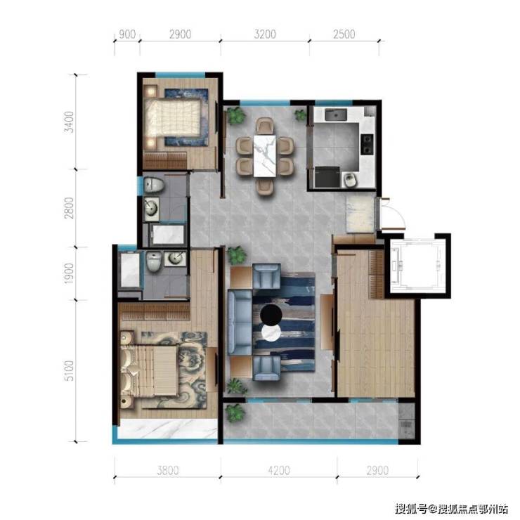 建面约90㎡(两房两厅两卫)