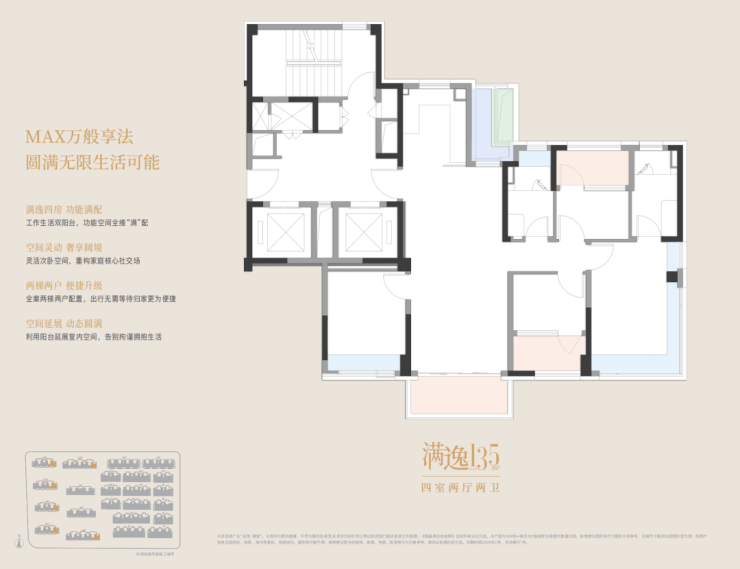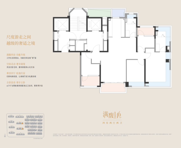 建面约112-146㎡3-4房产品,两梯两户享受独立的电梯厅,同时全系标配南北双阳台的设计,相当惊艳。