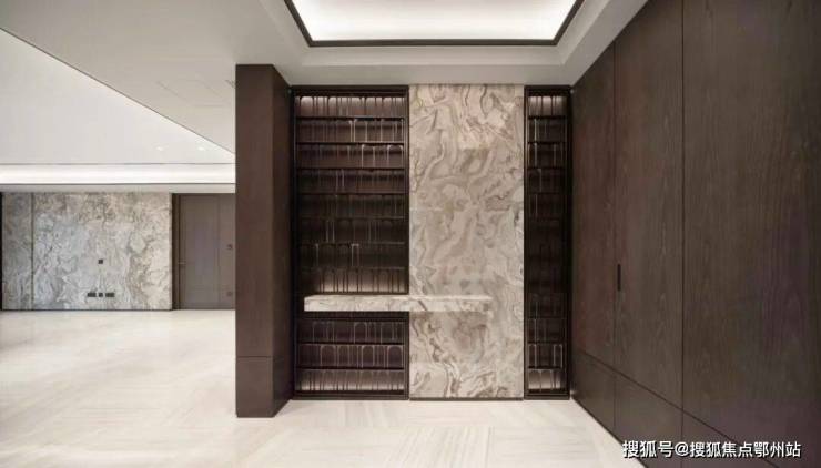 推开房门的刹那,尊贵感更是油然而生, 重工且精致的玄关背景墙 ,审美调性也很高。