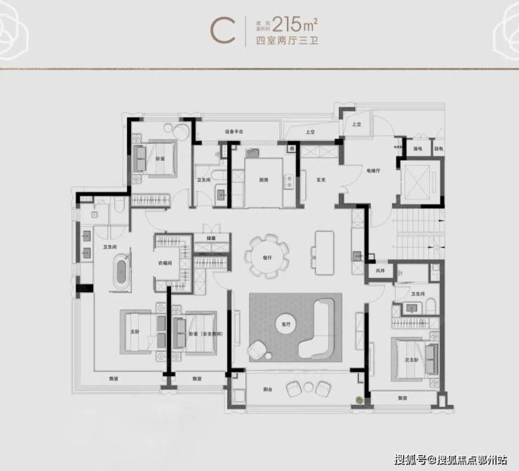 这款建面约215方无论是空间的设计感,还是尺度感,都大幅度超越。