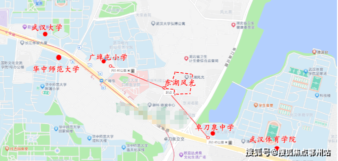 教育上,小区距离洪山区第一梯队的中小学组合广埠屯小学和卓刀泉中学直线距离约400米,东湖风光一期是对口这两所学校的,附近还有众多高校环绕,学习氛围非常浓厚,以后娃找家教简直是得天独厚的资源。