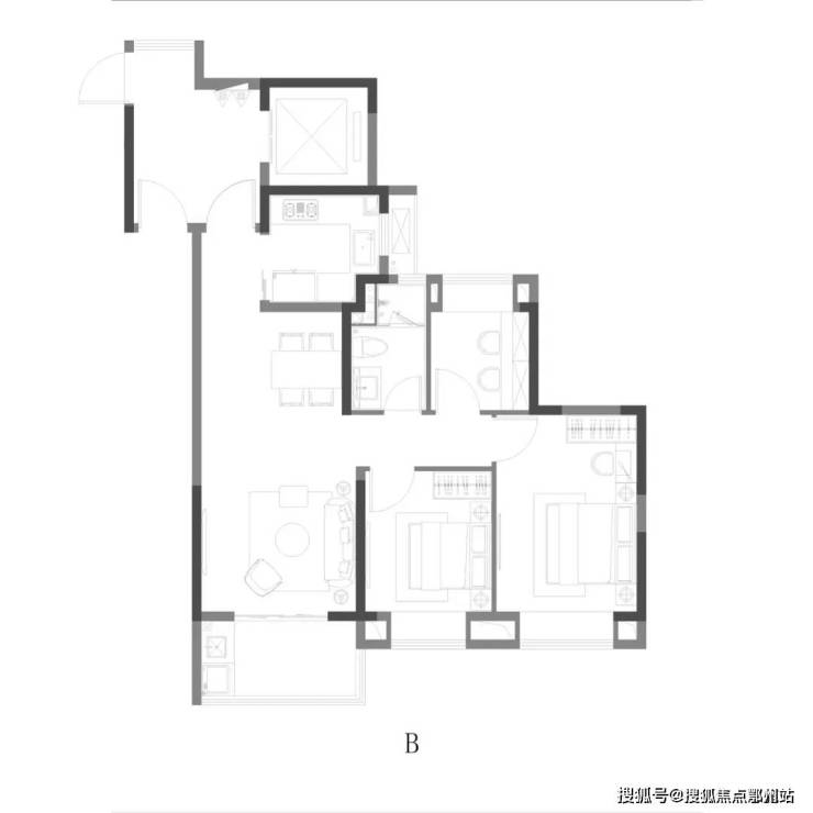 B户型 | 3室2厅1卫 | 建筑面积约89㎡