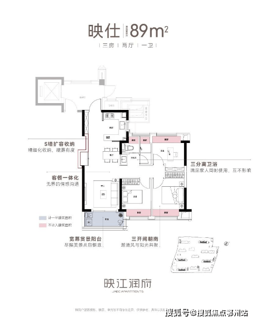作为华润置地海派3.0作品,映江润府的卷,更在于其硬核的产品力,尤其在户型的设计上,堪称卷到极致。映江润府全盘仅规划89和103两种户型,每个都堪称王炸。