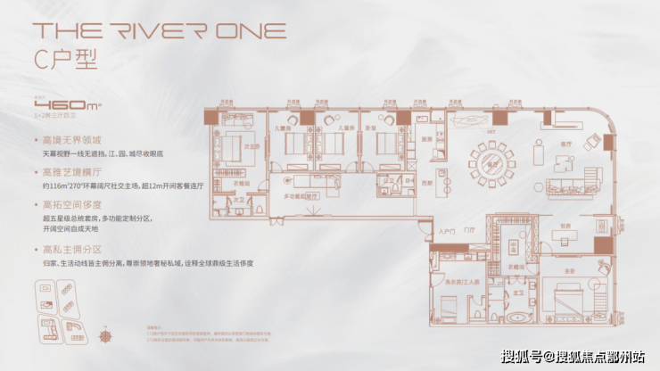 在售户型:(建面约385-1900㎡江景峯值大平层)