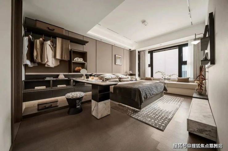 奢华主卧套房,开间达3.15m左右,双排独立的衣帽间,私密感和尊崇感超强。景观飘窗+超高窗墙比,根据喜好进行个性化的布置,打造一方专属空间。