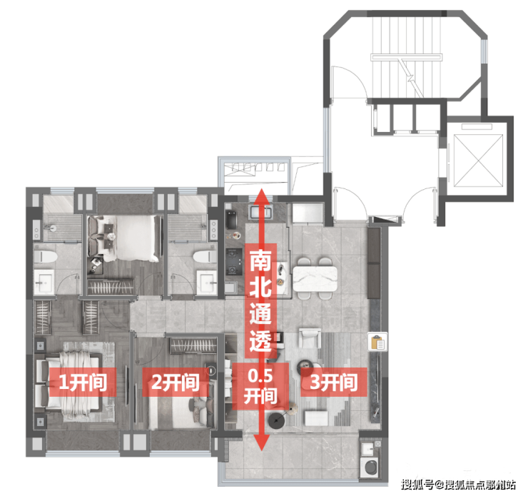 这个107户型,真的吊打目前市面上的百平户型,实体感受彷佛是身处130平的空间。加上小户型能设计成横厅,南北通透,动静分离,