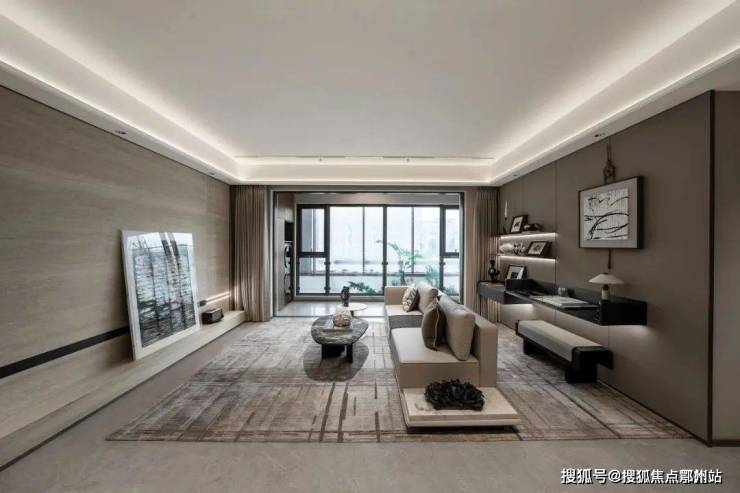 超过5m的南向宽景阳台,全景落地窗的搭配,观景视野开阔!值得一提的是,从客厅到阳台,地面都是通铺的仿石砖大规格柔光砖,真正实现空间一 体化。