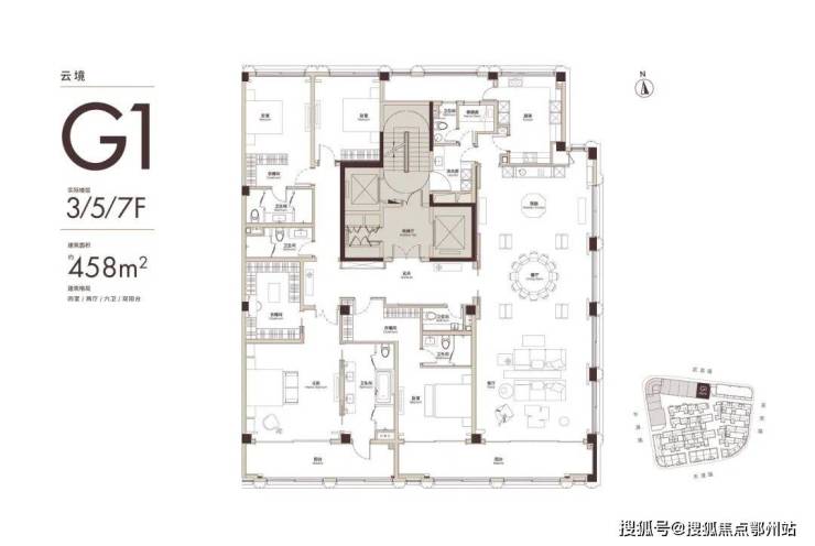 建面408㎡大平层 南向面宽26.8米,得房率89%