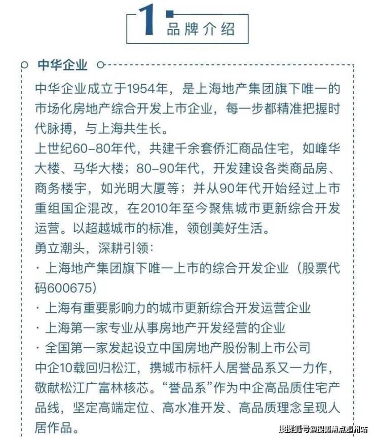 中华企业股份有限公司(以下简称中华企业)成立于1954年4月,是上海解放后经国务院批准设立的首家从事房地产开发经营的国有企业。1993年9月,中华企业公司改制为股份制上市公司(证券代码:600675)。