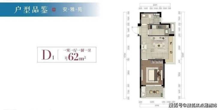 62㎡一房一卫户型