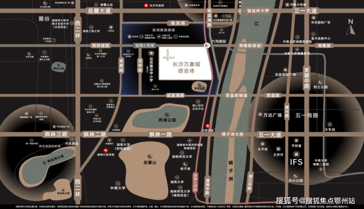 项目将以万象城为核心,打造建面 约81万方的TOD城市综合体 ,为MR.C呈现城市封面级作品。项目临近 4号线、6号线双地铁口湘雅路过江隧道 (建设中);周边 湘江风光带、西湖公园、望月公园 绿意盎然;近 博才小学东校区 (暂定名,在建中)、 湖南师大附中万象城实验中学 (暂定名,在建中),构筑人文盛境; 湘雅附属三医院、湖南省中医药研究院附属医院 等优质医疗资源,时刻呵护家人健康。