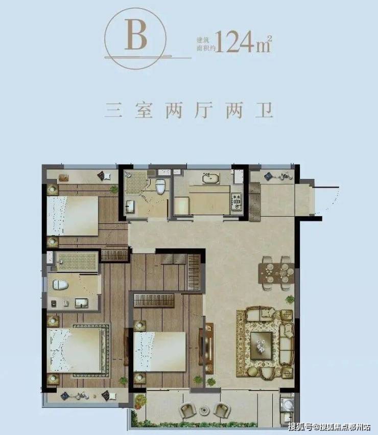 项目设计了建筑面积约96㎡的小三房、约124㎡的大三居以及约143㎡的洋房四室