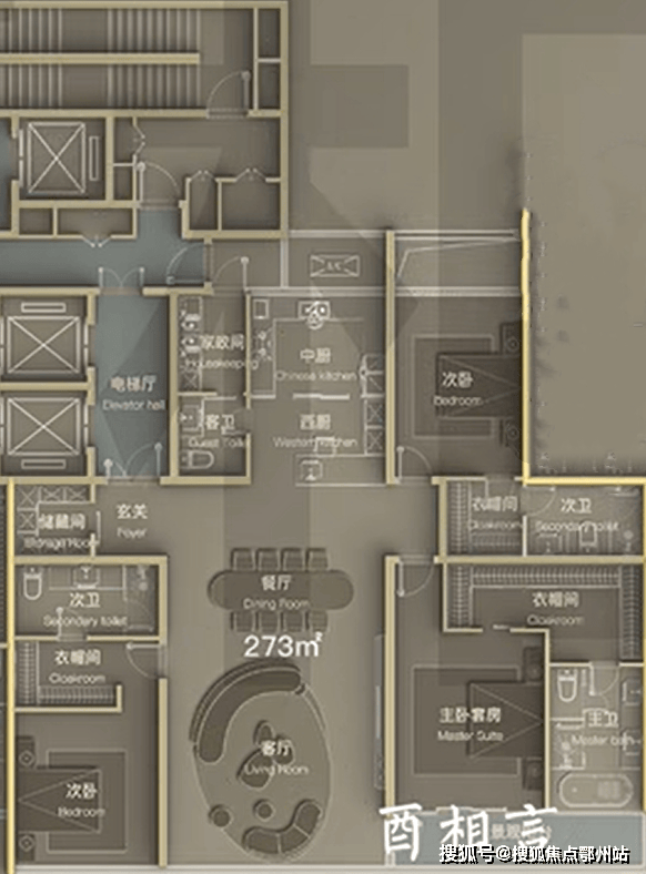 低区 建面约273㎡三室两厅四卫