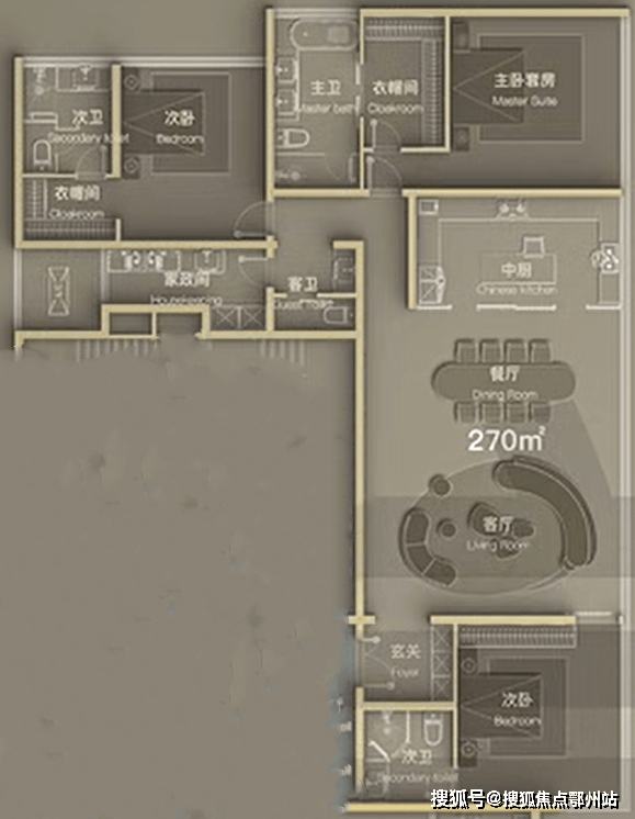低区 建面约270㎡三室两厅四卫