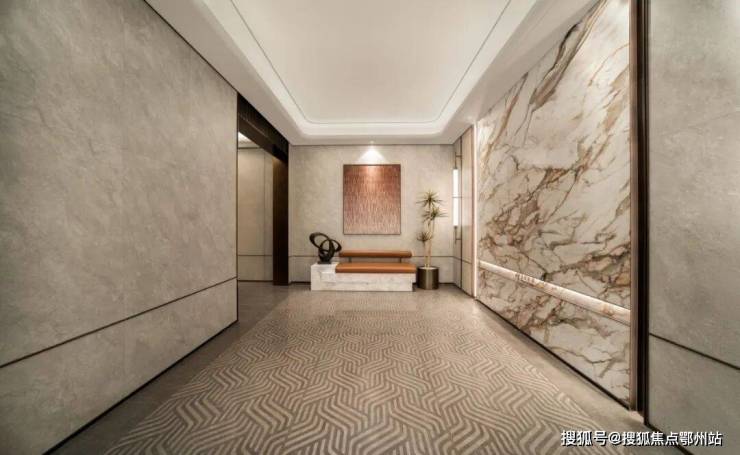 比如它的单元大堂,地面不是简单通铺,而是用上了定制波浪纹地砖,再用弧形金属波打线收边,质感特别高级 。