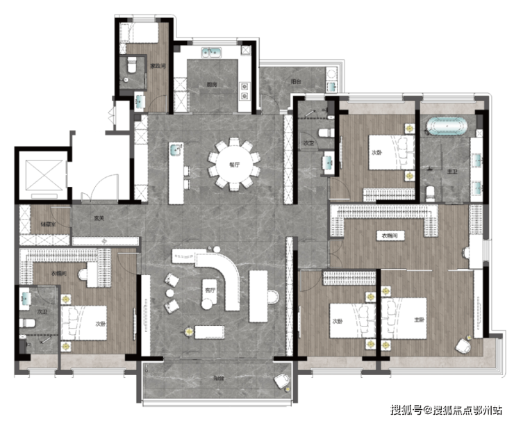 主卫可配置双台盆+浴缸6.8米客厅开间衔接南向全景阳台;