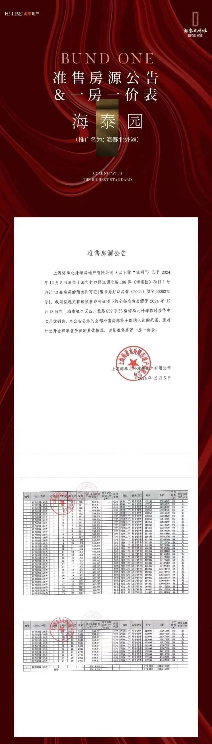 160米高层住宅,地上实际37层,带直升机停机坪,360°度欣赏江景,大堂挑高10米,2至28层每套面积约553平米一层两户、30层至52层面积约1222平米一层一户,单价13.6万-40万/平,总价7600万起