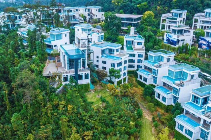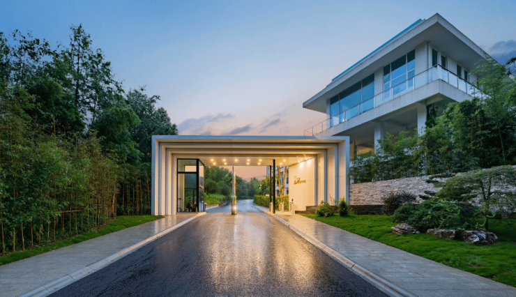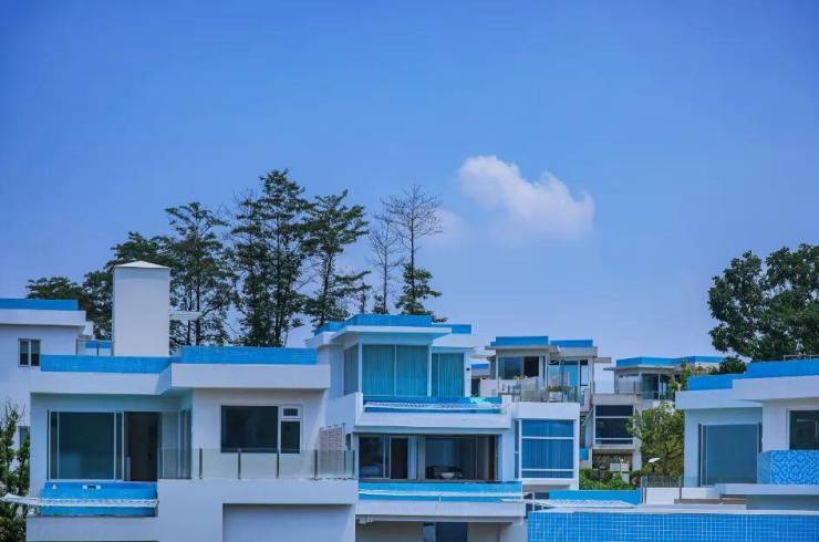 梦溪湖山庄位于湖州市德清县莫干山五四景区内,占地3000余亩,建筑主色调以蓝白为主,风景比肩圣托里尼。