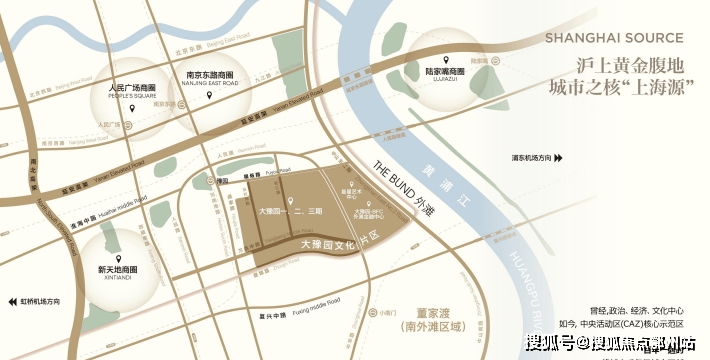 豫外滩所处的位置堪称得天独厚,它位于黄浦老城厢,这里被称为 “上海之根” 。项目东邻外滩、黄浦江,西侧紧挨着豫园、城隍庙 。