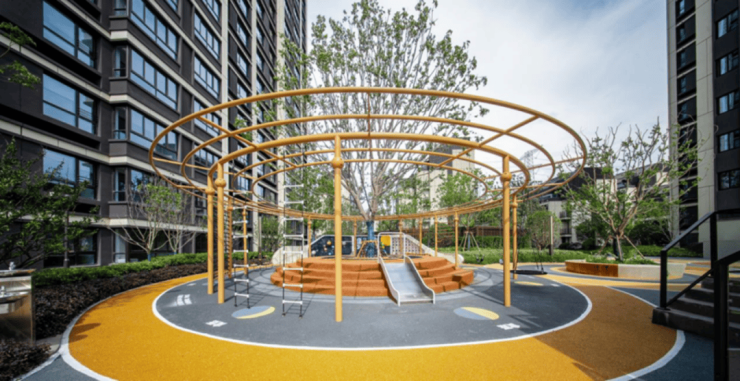 增加大量 儿童游乐设施, 享受“鲲鹏乐园”主题儿童乐园、鲲鹏书院、老人颐乐空间等全龄共享的活力空间,塑胶软性地坪倒圆角处理,更安全。