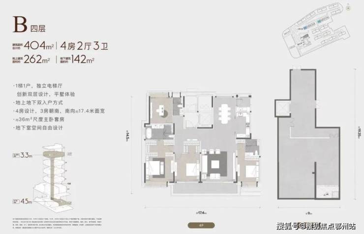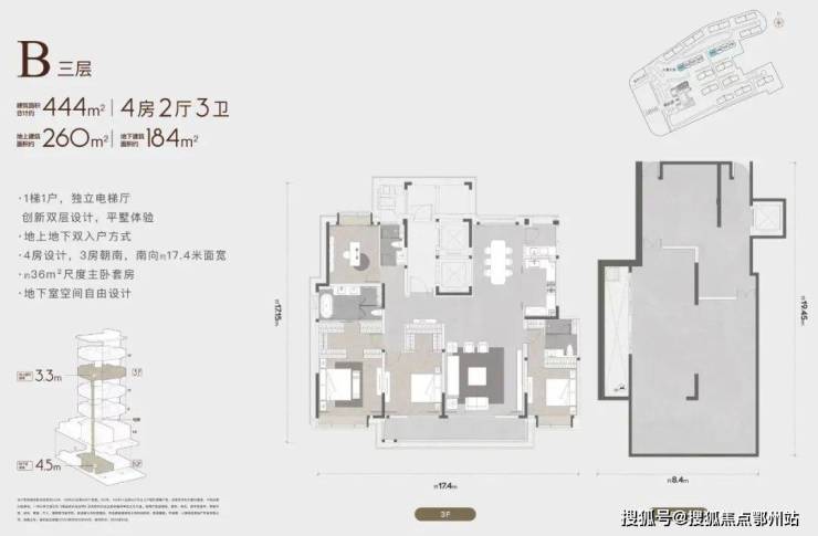 建筑面积合计约335-445m²,地上建筑面积约226-286m²,地下建筑面积约108-186m²,地上层高3.3m,地下层高4-6.65m,双入户方式,坐享买一层得两层的平墅生活。