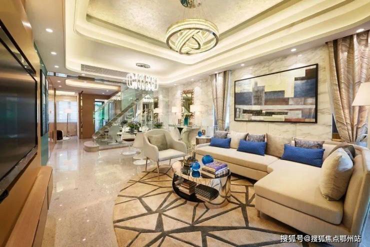 客厅交付时是6米挑高的空间设计, 彰显主人的不凡气度,采光和通风更加通透,空间阔绰大气。