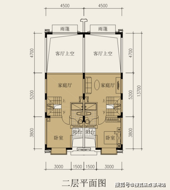 从楼梯登上二层,一条不长的走廊连通一个卧室、一个家庭厅及一个卫生间,几乎没有面积浪费。