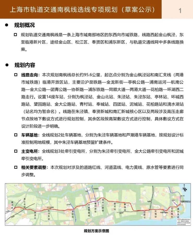 规划长三角市域轨道“ 南枫线 ” (在建) ,设“朱泾站”(项目一侧)和“朱泾东站”双站点
