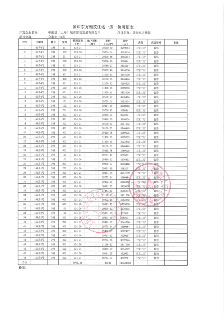 一房一价表