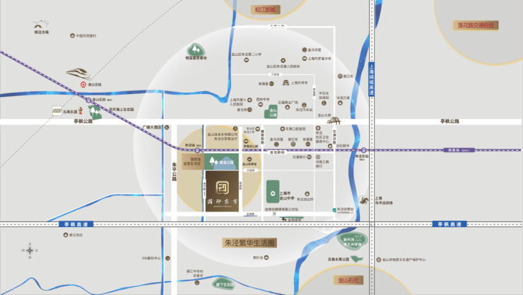项目直线距离约300米上海市实验性示范性高中——金山中学(创办于1927年)、约800米抵达朱泾小学(创办于1905年)以及周边规划多所小学、幼儿园等 完善教育配套
