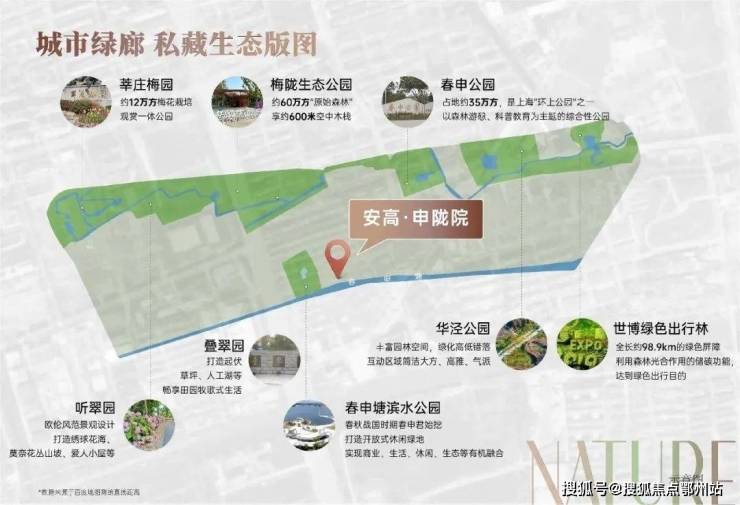 居于繁华深处,更要有繁花为伴,安高·申陇院3km步行范围内坐拥约60万m²梅陇生态公园、春申塘滨水公园、约5km梅陇绿道、约6km的公园廊道等生态秘境,与城市生态关系协调,惬享鲜氧绿意。(注:数据来自百度地图直线距离,仅供示意参考。)