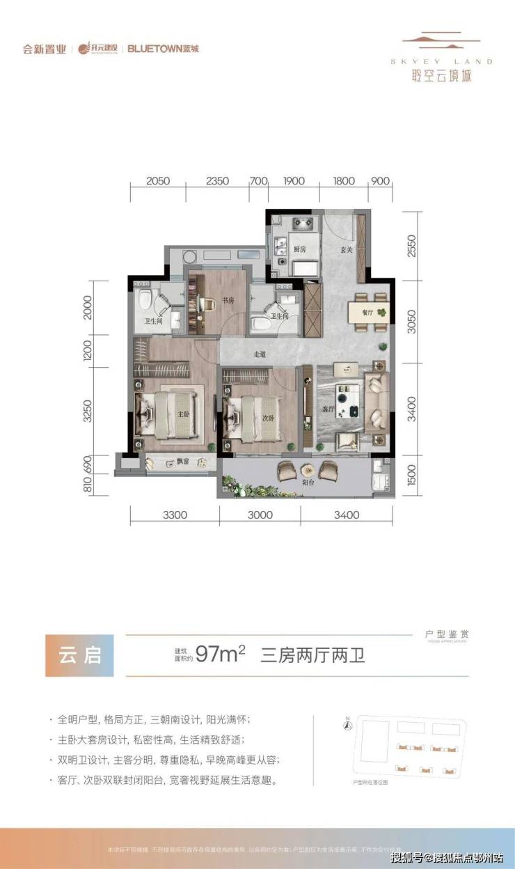 户型方面打造了建面约97-110㎡品质空间,对新生代的城市精英来说可谓是“真香”户型,各空间尺度均衡、动静分区,精心设计三开间朝南、餐客厅一体、套房式主卧等户型亮点,即便以后和长辈同住,也可拥有自己的私密二人世界。