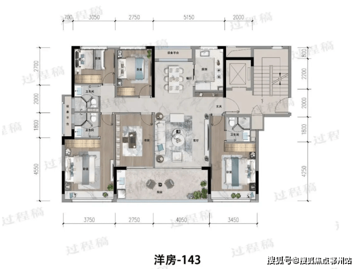 ·建筑面积约152-193㎡,19幢4叠、2幢6叠、4幢7层洋房