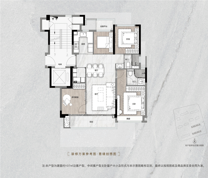 户型建面约107-170平,107平洋房,可做4房;其他户型为纯T2小高,类一梯一户,纯改善四房社区(以实际入市为主)