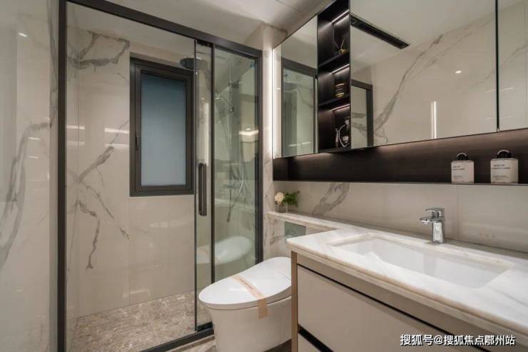 汉斯格雅花洒+顶喷、 杭州西湖区 建发·云涌之江售楼处电话/位置:400-788-2939「营销中心」✔✔✔自带加热除雾功能的通长镜柜、天然大理石台面细节上精益求精,诸如 玄关柜的收纳系统、木饰面的应用、仿大理石瓷砖