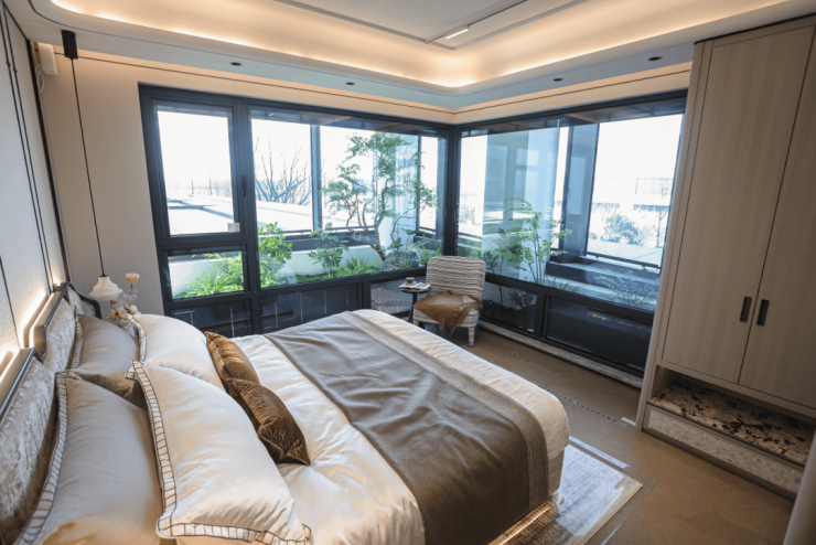 直接多出来 10%的使用面积,还不算入产证,加上南北双270°转角飘窗,不管主卧还是次卧,采光和空间感都跨级提升。