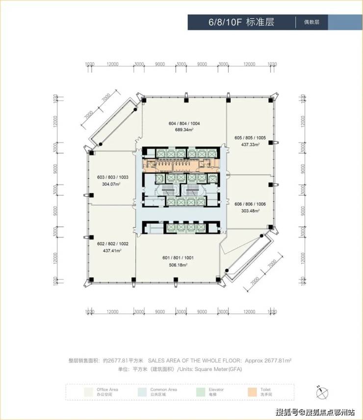 EIC超甲级写字楼,18米挑高室外大堂,单层2700㎡,单套约300-800平,精装代价2万+!一层6本证!层高:4.5米,
