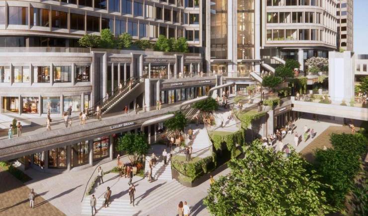 该项目打造了垂直复合业态,构建了“楼下漫游式商业街区 + 楼上静谧居住空间”的立体生活场景,对标日本麻布台22种生活方式,塑造出“公园艺术奢宅”的独特形象。